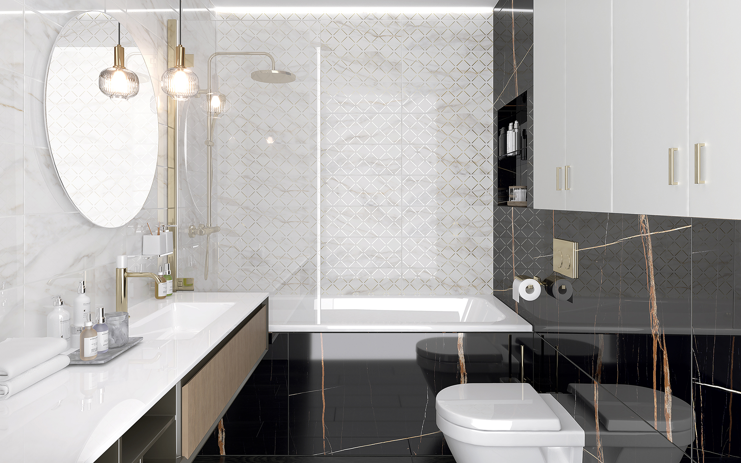 Эта коллекция позволит вам создать шикарную королевскую атмосферу в ванной комнате. Ее основа - проверенная временем строгая классика белого, мрамора с благородными дымчатыми прожилками. Однако такому фону необходимо разнообразие. Как нельзя лучше его помогают создать декоры в которых натуральная неброская натуральная текстура оттенена яркими золочеными вставками, причем, без какой бы то ни было избыточности. Наоборот, геометрический или мозаичный орнаменты смотрятся достаточно строго. Королевское величие и испанский шик - вот мотивы нашей новой коллекции. Оцените сами!